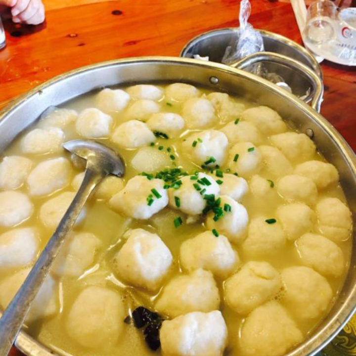 汤逊湖鱼丸,是以汤逊湖出产成熟鳙鱼,又叫花鲢、胖头鱼、大头鱼、黑鲢,也叫雄鱼,是中国四大家鱼之一。经精心加工制作而成,它有色泽如玉,口感强细腻滑爽,味道鲜美,营养丰富及独特的烹调工艺等特点。其脂肪含量低,而且富有钙磷,铁和多种维生素,氨基酸及蛋白质,是“食鱼不见鱼”,强身健体,益智的营养佳品。